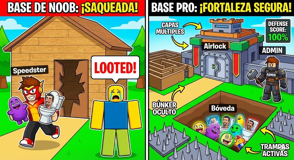 Tus estrategias deben contrarrestar ambos tipos de amenazas. No existe la base 100% invencible en Roblox, pero el objetivo es hacer que robarte sea tan difícil y molesto que los ladrones prefieran ir a la base del vecino "noob".